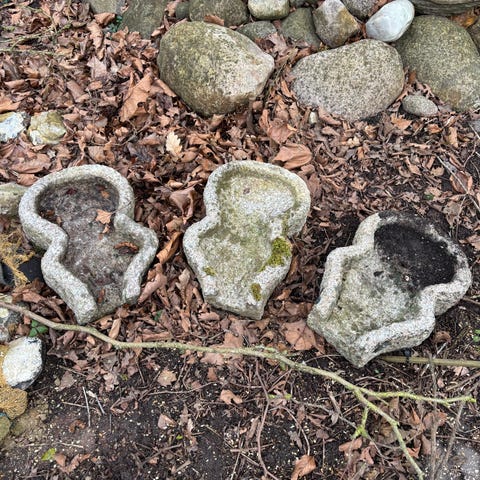 Granitvandfald til springvand med 3 ringe, tungt , nederste ring diameter 50 cm højde 19 cm, mellem ring 35 cm i diameter ,højde 12 cm, øverste ring 21 cm i diameter, højde 10 cm