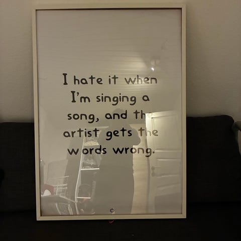 Queen - billede af Freddie og tekst Bohemian Rhapsody i IKEA lomviken ramme 70x100.