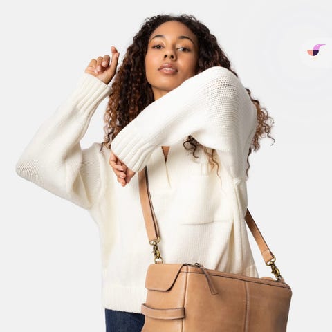 lyseblåt PU-læder/kunstlæder med lynlås i toppen.
