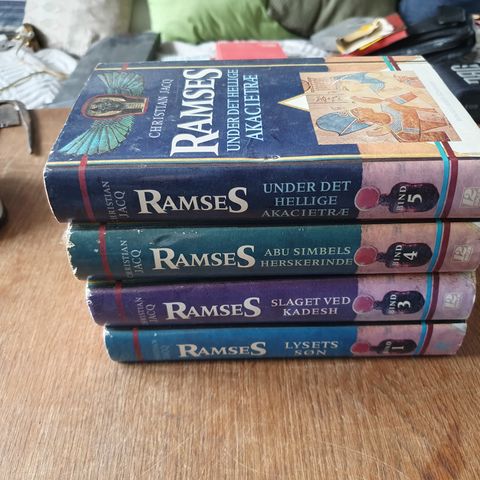 Ramses-serien i fem bind af Christian Jacq. Særudgave. Fra røg- og dyrefrit hjem. Sælges samlet.
