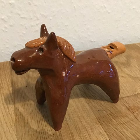 Andre samleobjekter, Piv i røv dyr, Unik fløjte i keramik, der ligner loch Ness Eller et får. Den har en fantastisk klang og kan spille 4 toner. Lækker brun grønlig glasur. Minder om en piv i røv fugl, men er en anden art af fløjtedyrene.