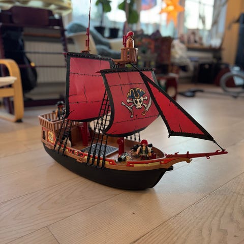 Sat billigt, da snor til sejlene er knækkrt/faldet af, så nye skal på sættes eller kan fint bruges uden sejl.