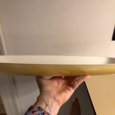Stilsikkert retro fad fra Guzzini. Orange gennemsigtig kant. Plastik. Med få mærker efter brug.