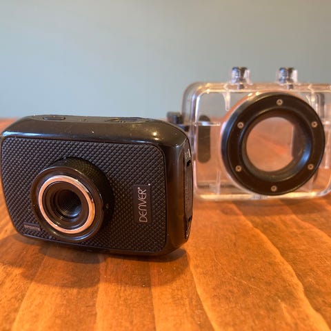 Sports Cam med Full HD 1080p opløsning. Kameraet kommer med diverse tilbehør som ses på billederne, inklusiv vandtæt etui. Perfekt til at fange dine eventyr.