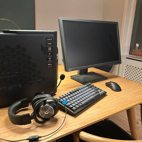 Skærmen giver en super fed gaming oplevelse med ultrawide format og høj refresh rate (180Hz), som gør spil meget mere smooth.