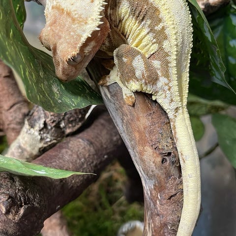 Den smukkeste (Hvid-gule) Lilly White Kronegekko hun 0.1 sælges. Har lige lagt æg og er derfor lidt tynd… nu skal hun lige fodres godt op.