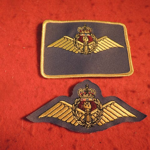 Nydeligt og pænt stort - vel brystmærke - ærmemærke fra det danske flyvevåben