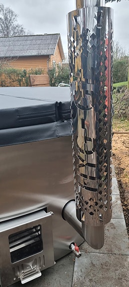 Vildmarksbad, Vildmarksbade, Udendørsspa, Udespabad, Udespa, Spabad, Boblebad, Sauna, Saunaer, Hygge, Sommerhus, Glasfiber, Akryl, Indsatser, Brændeovn, Gasovn, Koldtvandskar, Drinksholder...