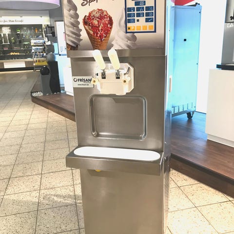 Blandingen med tandhjulspumpen presses ind i cylinderen ved højt tryk med tilsætning af luft og skaber en cremet, højvolumen is med en luftpåvirkning på op til 80 % med f.eks. vores MUU softice original fra Danmark.