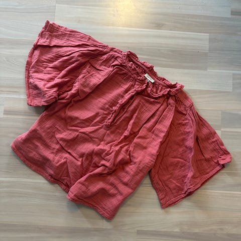Flot bluse/overdel fra Pompdelux. Dne er blå med sart lyserød streg rundt. Str. 134 - 140. Der er få steder der er nogle syninger der er lavet. Vi ved ikke om det er meningen, men det har intet af betydning - derfor den stærkt nedsatte pris. Se billederne. Fast pris. Kører ikke ud med varen.