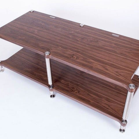 To the base part other shelves are stacked subsequently, that are fitted with massive steel legs ending with anti-resonance spikes in five height versions.