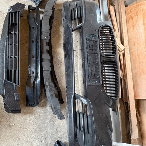 Varenr. 1068. BMW F10 F11 5-serie forkofanger i gråmetal. Passer model 2010, 2011, 2012, 2013, 2014, 2015, pæn stand uden revner eller skader - dog lidt små ridser her og der. Prisen kr. 800,- er for forkofangeren. Sideskørter højre og venstre haves også til 500,- pr. stk. Samlet pris 1.500,-