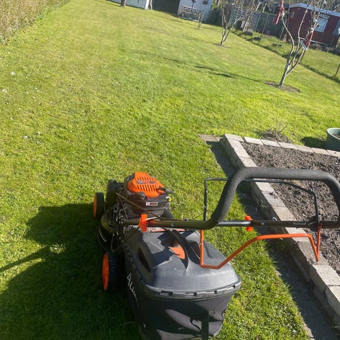 4INONE function byder på klipning, opsamling, bioklip og sideudkast af græsset på plænen. Ergonomisk formet skaft giver øget komfort under brugen af solo® by AL-KO 5210 SP-A. Det høje, aerodynamiske stålskjold muliggør særlig effektiv opsamling af det afklippede græs. Det afklippede græs ender i den 60 l store opsamler af kunststof.