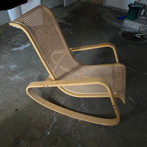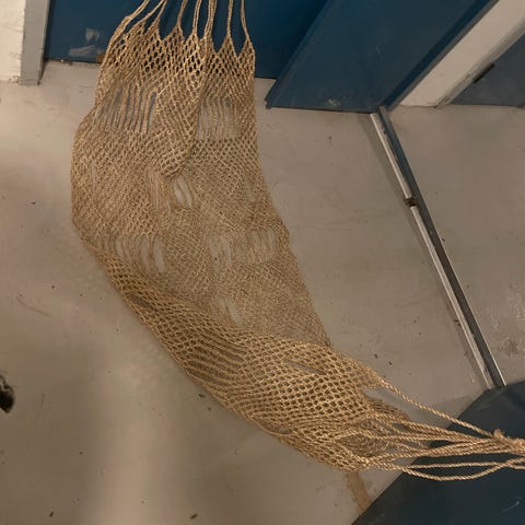 Waldemar Rothe for Rosenthal, 'Relaxer I' hammock, beech, fabric, rope, iron, Germany, 1974.