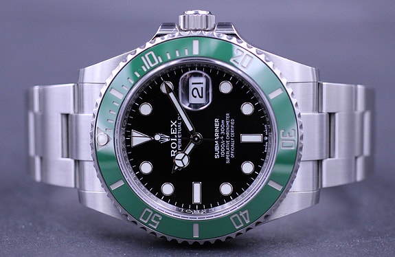 Rolex’ nyeste samt eneste venstrehånds GMT-Master II. Her på en super flot Oyster lænke og med keramisk insert i grøn & sort.