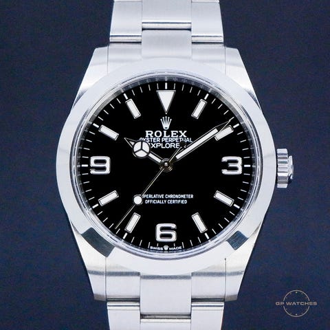 Dette er nyeste Explorer 124270 i 36mm. Uret er med den klassiske sorte Explorer skive.