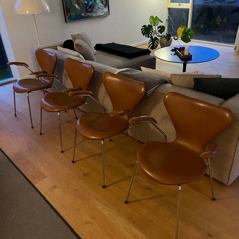 Poul Henningsen. Sæt på fire stole, model ‘PH 507’