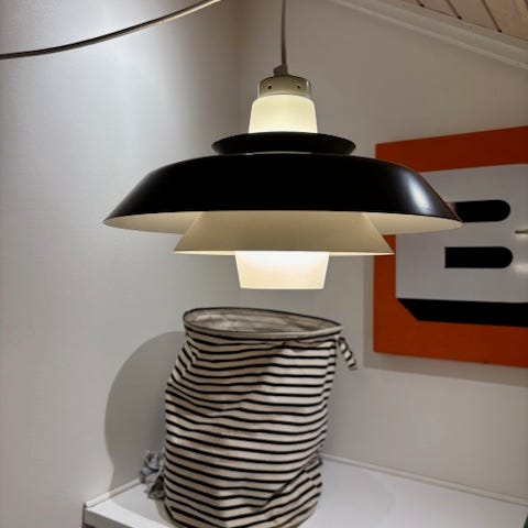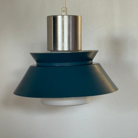 Pendel, sortlakeret metal og ternet opaline, dia. 40 cm. Skævhed samt skift af ledning må påregnes.