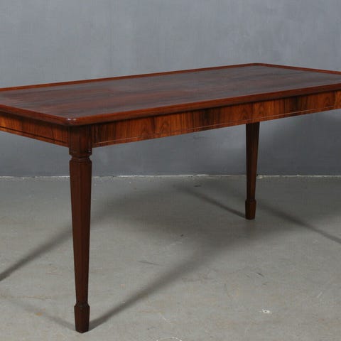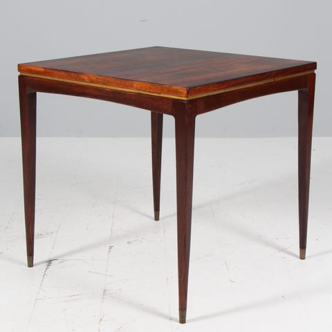 Tue Poulsen, sofabord med dekorerede fliser. Signeret. Stel i delvist massivt palisander. H. 50 cm. B. 62 cm.