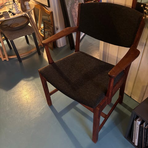 Henrik Tengler. Armstole, model Chairman med stel af børstet stål, kopstykke af lakeret ahorn, sæde og ryg betrukket med cognac farvet anilin læder. Formgivet i 1991. Fremstillet hos Hansen & Sørensen.Fremstår nybetrukket med sort cognag farvet vintage anilin læder.