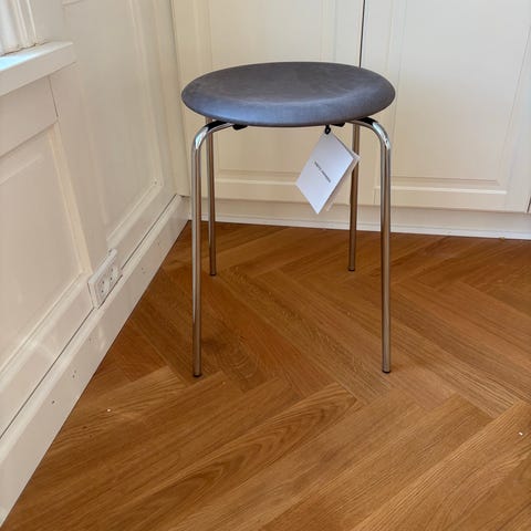 Arne Jacobsne skammel nybetrukket med walnut elegance læder. Stel af støbt aluminium. Fremstillet hos Fritz Hansen.