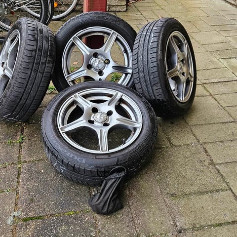 Super fine alufælge på sommerhjul 4 stk passer på Kia Rio, Hyundai i20, Yaris, Suzuki Swift mm God stand, godt opbevaret. 65 procent tilbage i mønster. Med sensor