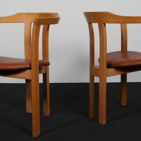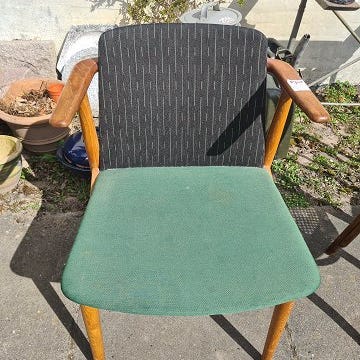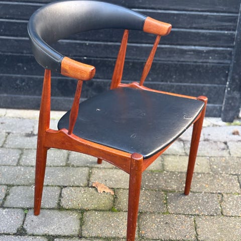 Hans Olsen armstol af teak, eg og stof. Model 107.