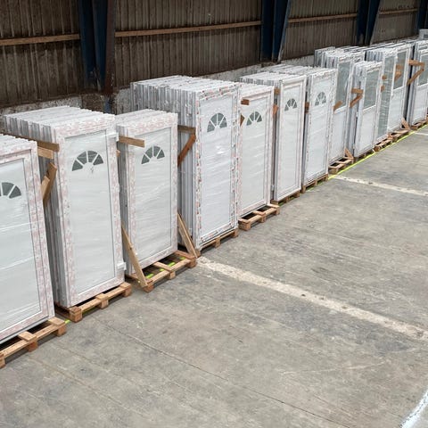 Vi har et stort udvalg på lager. Besøg vores webshop på https://www.online-doere-vinduer.dk/. Klik i højre hjørne Gå til varen lige over vis nummer så kommer du til webshoppen hvor du kan se alle døre og vinduer vi har på lager samt priser.