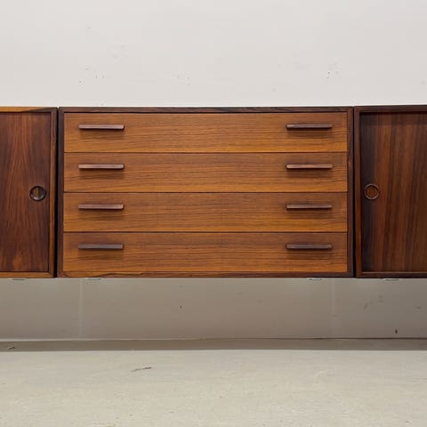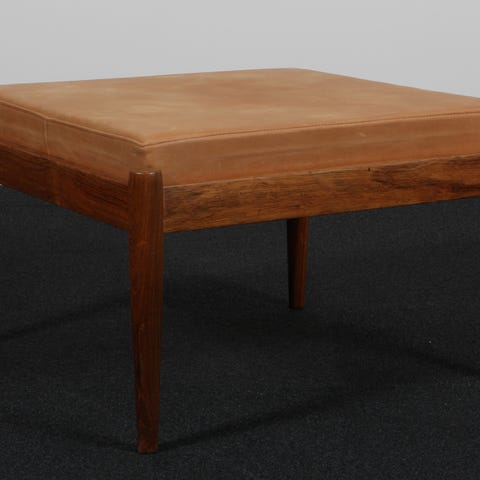 Kai Kristiansen Univers hjørnemodul af massiv palisander, sæde af sjeneflet. Original betrukket med brunt læder. Fremstillet hos Magnus Olsen, model Univers. H. 76/45 B. 65 D. 65 cm. Fremstår med mærker fra tidligere hæfteklammer.
