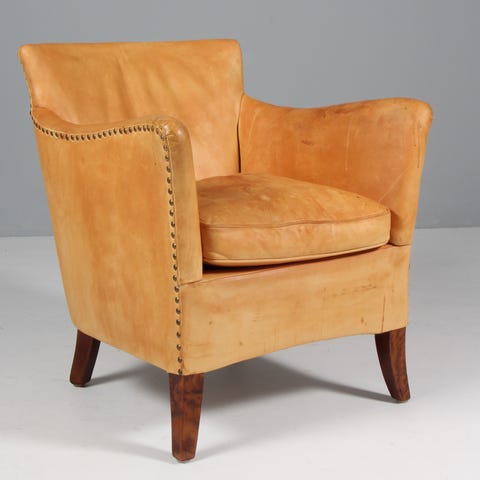 Dansk Møbelsnedker, par overpolstrede lænestole med lammeuld. 1940’erne