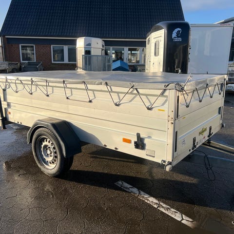 Traileren vi har på billederne her er fra årgang 2021. Den er nyserviceret med lys og almen teknik. Der er tale om en stærk og solid boogie-ladtrailer fra Humbaur, med sider i aluminium og finérbund i 18 mm. tykkelse. Traileren har nedfældelige og aftagelige sider, samt for- og bagsmæk, således du har mulighed for at komme til et helt fladt lad ved læsning. Trailerens sider er 40 cm. høje, og du har derfor en stor volumen i ladet, når de er slået op. Traileren har desuden 6 surringsøjer, som er integreret i bunden, således du har gode forudsætninger for at sikre dit gods til transport. Traileren har på nuværende tidspunkt en totalvægt på 1.000 kg. Der er dog mulighed for opvejning til enten 1.300/2.000 kg. totalvægt mod merpris (syn), alt afhængig af hvad for en af trailerne du går med.