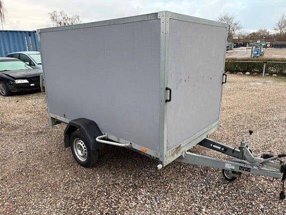 Ladmål 270x170x40 cm. alusider, integrerede lukkere, aftagelige hjørnestolper, monteret med nyt centermonteret kip næsehjul , 155r13 hjul, den er fra 5/2022 så næsten ny trailer , efterset og klargjort på eget værksted,