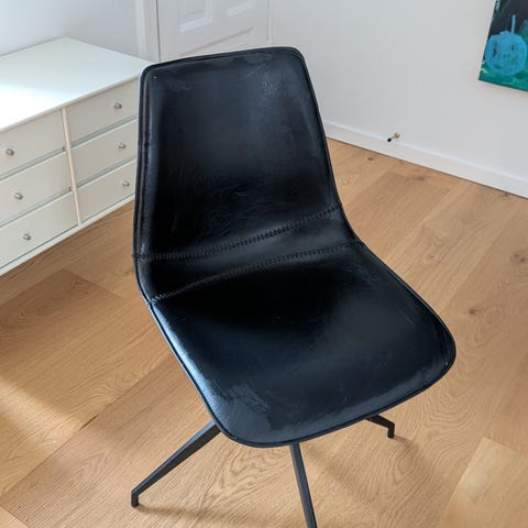 6 stk. Nye Nana spisebordstole i sort med lædersæde, stolene er nye og leveres i papkasse. En rigtig lækker stol produceret i Italien, hvor siddekomforten er helt i top. Lagervare kan afhentes i dag.