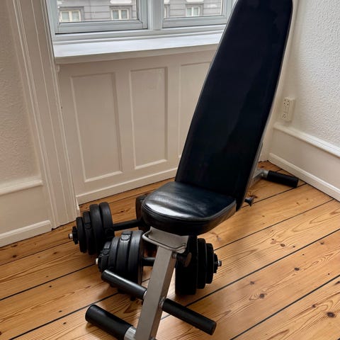 Træningsbænken har justerbart ryglæn og kan klappes sammen. Kan ses & prøves i vores showroom på Frederikssundsvej 316, 2700 Brønshøj