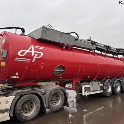 alle stolper kan klikkes af uden værktøj , tre aksler , træ og stål bund , bindeøjer , hydraulisk håndpumpe , reservehjul , næsehjul , lås i træk