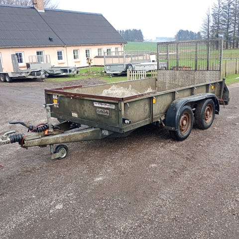 lad længde 5,5 meter , lad bredde 2,2 meter , tre aksler , 10" hjul , værktøjskasse i ladet , bindeøjer i begge sider , stål fælge , reservehjul , næsehjul