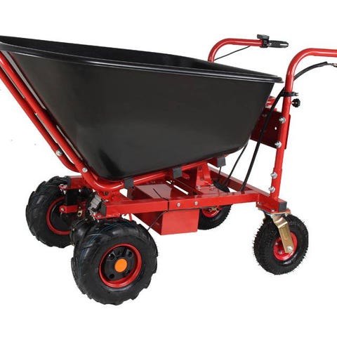 Den elektriske trillebør leveres med 2, 48V og 25Ah, blybatterier til en autonomi på ca. 7 timer, afhængig af brugsformen.