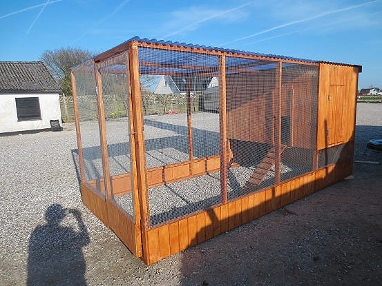 Danskproduceret hønsehus 10 - 15 høns, med læ hjørne, 2 redekasser og 1 sidepind.
