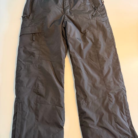 Skitøj, Skibukser, Etirel, str. 128, Et par gode skibukser i sort med aftagelige og justerbare seler - str.128. Med lynlås og snefang i bukseben.