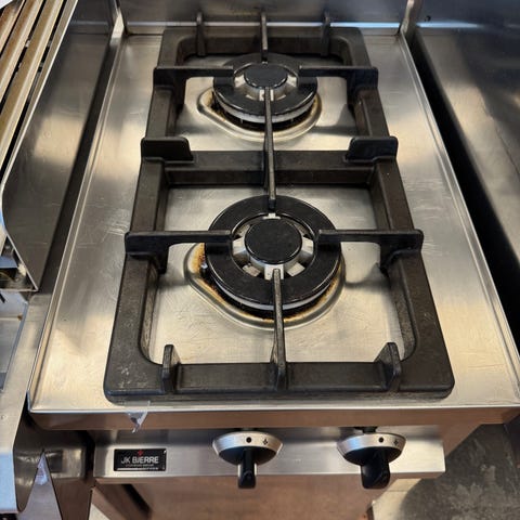 Den er på naturgas. Der er mulighed for at konvertere til gasflaske.