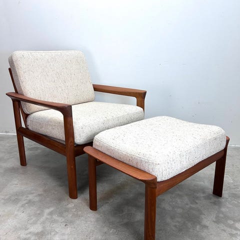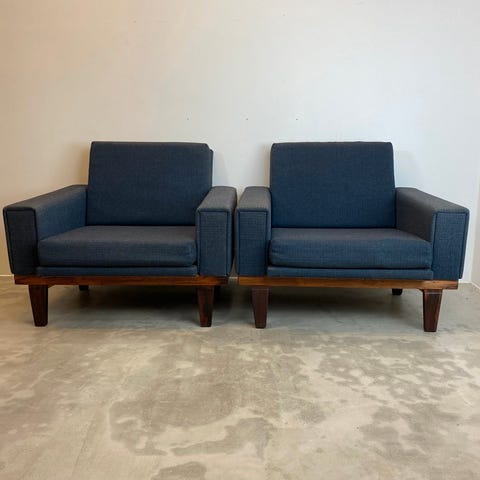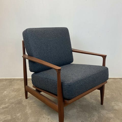 2 stk L.Olsen & søn møbelfabrik lave lænestole med stel i teak og orginale springhynder