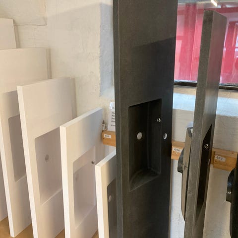 Vi har et stort udvalg af nye vaske og vaskebordplader af granitex, kunstmarmor, stone mm. Vi har omkring 250 vaske på lager, de fleste har vi kun i ét eksemplar, stående uindpakket i vores lagerudstilling og det er derfor vi kan sælge kvalitetsvaske så billigt! Der er et stort udvalg, i mange dybder og længder.
