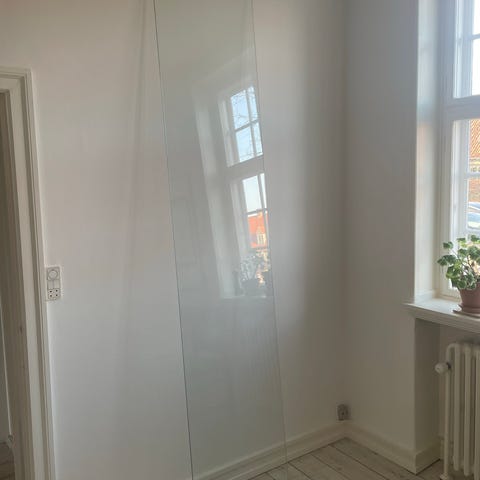 Udstilling, stænkplade, hærdet glas, 25 x 245 cm.
