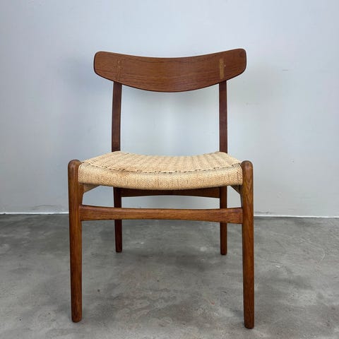 Hans j Wegner CH 23 4 stole med stel i patineret lakeret eg og kopstykke af fineret teak ,sæder med senere flet