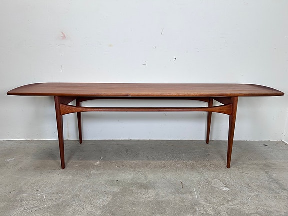Finn Juhl stol med stel af massiv teak og sæde og ryg med grønt uld