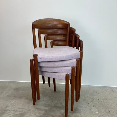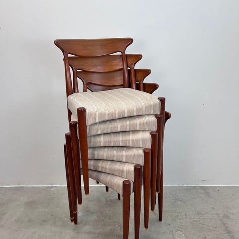 6 Johannes Andersen stole med stel af massiv palisander og sæder med blomstrert stof .
