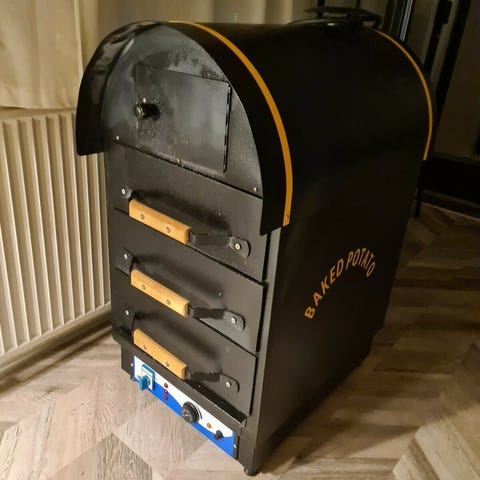 Vores Teltovn er fremstillet af rustfrit stål, hvilket sikrer en solid og pålidelig konstruktion, der kan modstå selv de mest krævende forhold. Med en materialetykkelse på 1 mm og varmeresistent lakering på overfladen er denne ovn bygget til at vare og levere fremragende madlavning i årevis fremover.