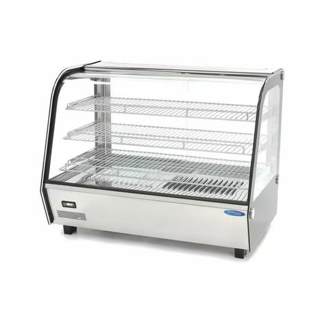 Med flotte glasskydedøre på forsiden og skydedøre på bagsiden samt glasvinduer på alle fire sider tilbyder denne varmemontre en fantastisk præsentation af dine retter, samtidig med at det er nemt at tilgå dem.
