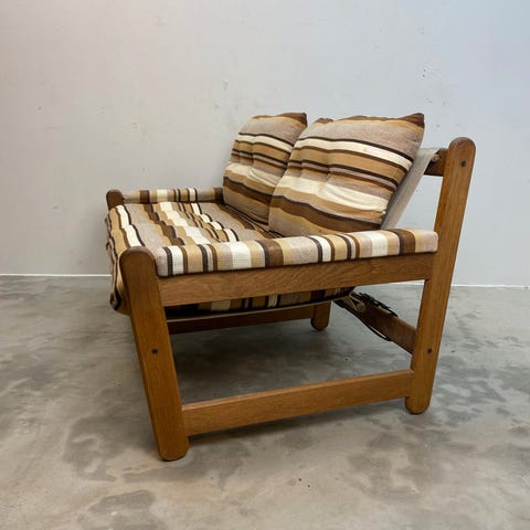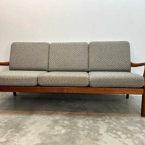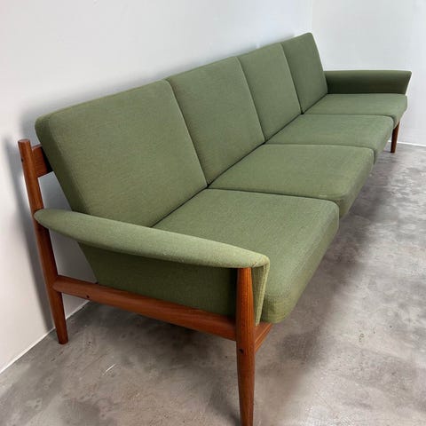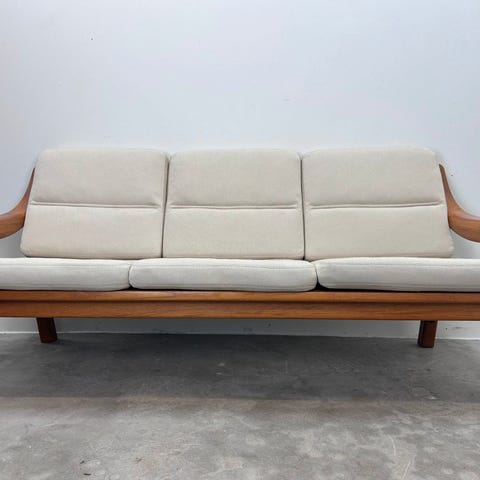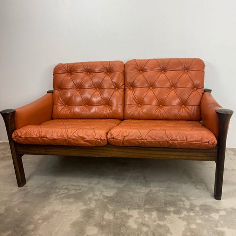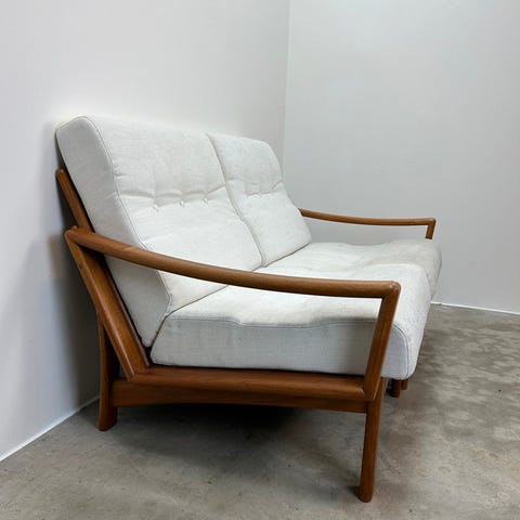 Jupiter 2 personers sofa med stel i massiv teak og orginalt læder