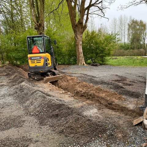 Udlejning af ny minigraver. 1000 kr. inkl. moms pr. dag.